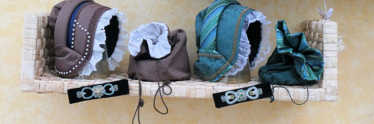 Wie man Hauben für die Friedberger Zeit fertigt, können alle in den Kursen der Stadt Friedberg bei den Hut- und Haubenmacherinnen Irene Kumpfmüller und Carina Lulei lernen. Jede der Hauben wird zu einem Unikat. Dabei wird der breite Haubenrand aus steifem Etamin-Stoff, den die beiden Hutmacherinnen schon in die richtige Form gebracht haben, mit Stoff überzogen und mit seitlich weit nach vorne gezogenen Rüschen versehen. Die große, steife Schleife schließt den gefälteten Haubenboden ab. Die Verzierung mit Borten bleibt der Fantasie überlassen.