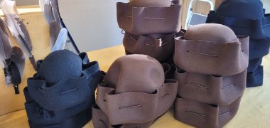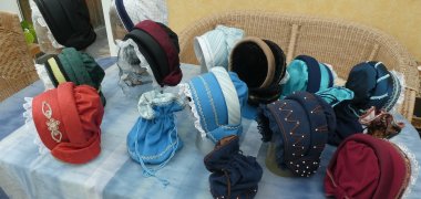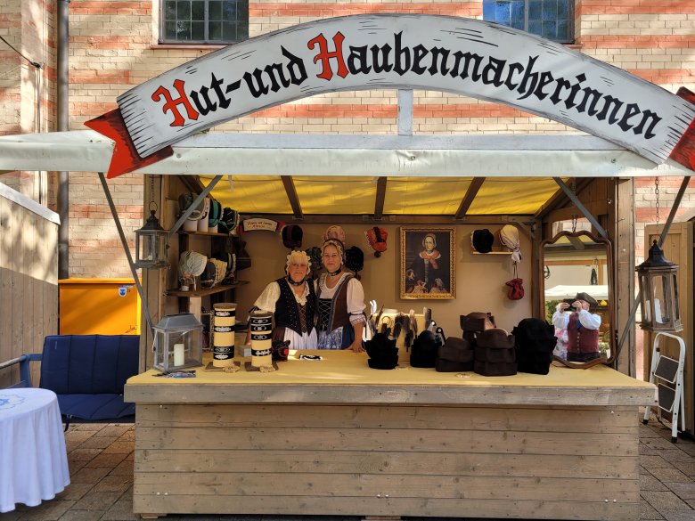 Käuflich erwerben kann man Hauben und Hüte am Stand der beiden Hutmacherinnen beim Stadtfest.