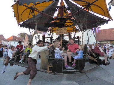 Auf dem Friedberger Altstadtfest wird ein von Menschenkraft angetriebenes Karussell gezeigt, das immer große Belustigung hervorruft. Mitglieder des Alpenvereins Friedberg und des BC Rinnenthal drehen dabei das Karussell zur großen Gaudi der Zuschauer und der Daraufsitzenden bis zur schnellen Fahrt.