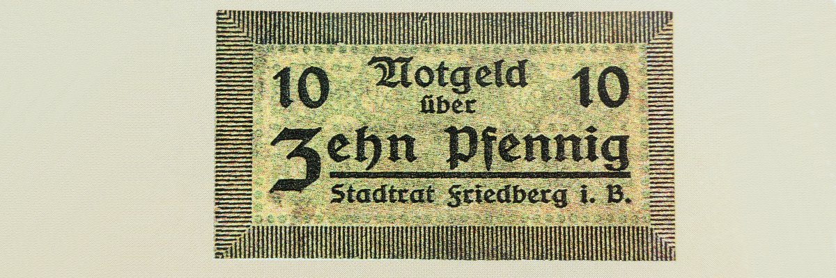 (Artikel unter Verwendung der Schrift Friedberger Sparkassengeschichte von Stefan Fendt.) Bild in der Kopfleiste: Friedberger Notgeld von 1920.