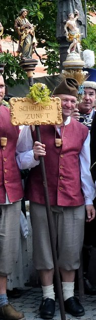 Vom 1. Stadtfest an beteiligen sich die Schreiner mit einem Gemeinschaftsstand am Stadtfest „Friedberger Zeit“ und bieten Aktivitäten für Groß und Klein an. Beim Stadtfest 2019 fertigten sie in einem Gemeinschaftswerk ein Wegkreuz neu an. Ihr Zunftheiliger ist der hl. Josef. Ihre Zunftstange präsentieren sie am Stadtfest.