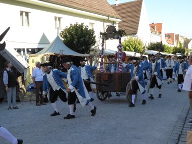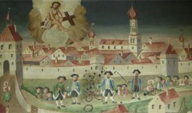 Da die Stadtwache (in Friedberg ehemals manchmal Stadtknechte genannt) auch mit der Überwachung des ordnungsgemäßen Abschießens von Böllern beauftragt war, ist sie auf einem Votivbild in Herrgottsruh abgebildet. Beim Prangerschießen am St. Benno-Tag 1783 auf dem Stadtwall explodierte die Böllerkanone. Es wurde wie durch ein Wunder niemand verletzt. Durch dieses Votivbild konnten wir die Männer der Stadtwache für das Altstadtfest „Friedberger Zeit“ historiengetreu einkleiden.