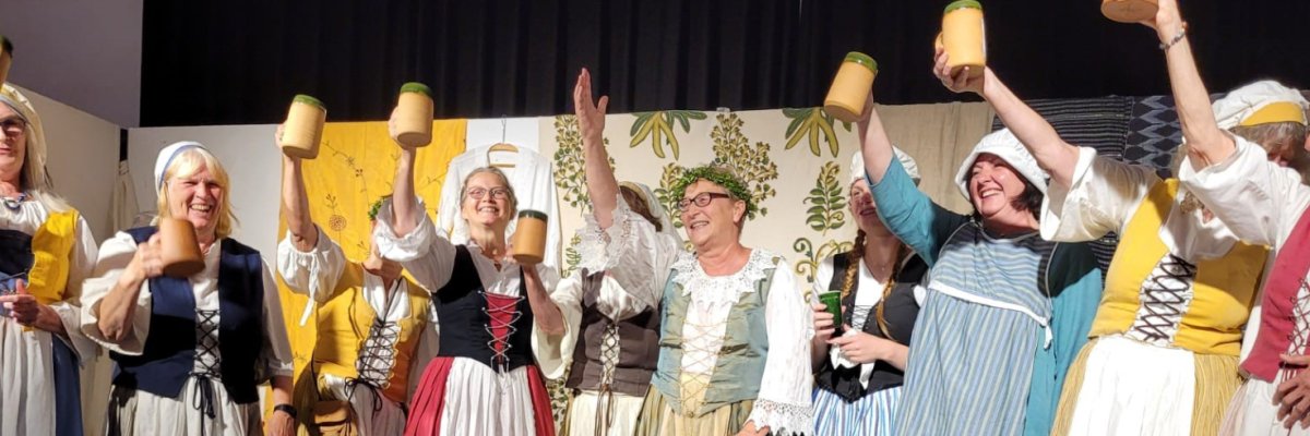 Die Stimme für die Frauen erheben im Stadtfest Friedberger Zeit die „Waibersleit“. Im gegenseitigen Wahrnehmen und Miteinander erzählen sie beim Altstadtfest 2025 an fünf Tagen, darunter den Wochenenden, im großen Saal des Schlosses Geschichten aus dem Nähkästchen. Den Text dazu verfasste Claudia Eser-Schuberth, die auch die Fotos zu diesem Artikel lieferte