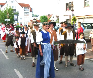 Seit dem 1. Stadtfest 1989 sind die Maurer mit der Fa. Lindermayr in Derching, der Gemeinschaftstand der Zimmerer mit Wolfgang Bradl, Alexander Strobel, Gerhard Waha, Jürgen Lindermayr, Philipp Späth und die Dachdeckerfirma Michael Voigt dabei. Mit ihren Ständen machen sie die Friedberger Zeit lebendig. Am Dinzeltag tragen sie ihre Zunftstangen mit Würde und Stolz in die Stadtpfarrkirche zum festlichen Gottesdienst und „Seelenamt“: die Zimmerer die Zunftstange mit dem hl. Josef, die Maurer die Zunftstange mit dem hl. Thomas und die Dachdecker die Zunftstange mit der hl. Barbara.