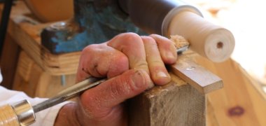 Der Drechsler leistet für die Anfertigung von Knöpfen die Vorarbeit und drechselt hölzerne Knopfformen als Grundlage für die Knopfmacher.