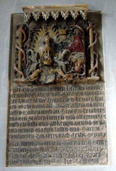 Obwohl von einer Steinmetzzunft in Friedberg im 18. Jahrhundert nichts bekannt ist, beherbergt die Stadtpfarrkirche St. Jakob ein Meisterwerk gotischer Steinmetzarbeit, den Gedenkstein von Herzog Ludwig dem Gebarteten vom Jahre 1409. Er zählt zu den größten Kunstschätzen, die die Stadt Friedberg besitzt. Dargestellt sind das herzogliche bayerische Wappen, die Oswaldlegende und die Sonnenscheibe des Herzogs. In Inschrift darunter bezieht sich auf die Errichtung der Befestigungsbauten Friedbergs.