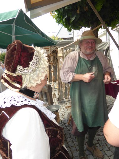 „Ist doch Ehrensache“, war die Antwort von Schmiedemeister Robert Höck auf die Frage, ob er wieder beim 8. Stadtfest „Friedberger Zeit“ mitmachen wolle. Genau diese Ehre hatte im Bewusstsein der Bürger im 18. Jahrhundert eine hohe Bedeutung. Nur ehrsame und ehrliche Leute konnten ein Handwerk erlernen. Unehrlichkeit oder eine schimpfliche Strafe, z.B. das Stehen am Pranger hatte den Ausschluss aus der Zunft zur Folge. Dabei wurde dem Handwerker der zur Zunfttracht gehörende Ohrring ausgerissen. „Schlitzohr“ ist seitdem die Bezeichnung für einen listigen Menschen.