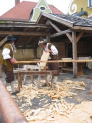 Auch die Schreiner und Schäffler bildeten in Friedberg im 18. Jahrhundert eine eigene Zunft. Obermeister Konrad Sedlmeyr von der Schreinerinnung Aichach-Friedberg nimmt heute mit der Durchführung der Zwischen- und Gesellenprüfung eine Aufgabe wahr, die ein Zunftmeister in der Friedberger Zeit innehatte. Mitglieder der Schreinerinnung Aichach-Friedberg Michael Fleig, Anton Gropper, Gerhard Heinzel, Alois Niedermaier, Thorsten Hofgärtner, Konrad Achter, Werner Sedlmeyr, Thomas und Konrad Sedlmeyr, Andreas Steinhardt haben ihren gemeinsamen Stand südlich des Rathauses. Die Fa. Werner Sedlmeyr fertigte beim 7. Stadtfest ein Dächlein für den historischen Tiefbrunnen beim Pfarrzentrum.
