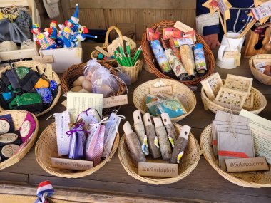 1789 sind in Friedberg 6 Hucker genannt. Sie waren in einer Zunft zusammengeschlossen. Ihr Dinzeltag war an „fer. 3. post Ascens.“, das ist der Mittwoch nach Christi Himmelfahrt. Wir gehen sicher richtig, wenn wir in ihnen Kleinwarenhändler sehen, die in Friedberg ein Geschäft hatten. Beim Altstadtfest „Friedberger Zeit“ verkaufen Sabine und Peter Seidenbusch Handwerksprodukte, die aus den Dominikus-Ringeisen-Werkstätten in Ursberg kommen.